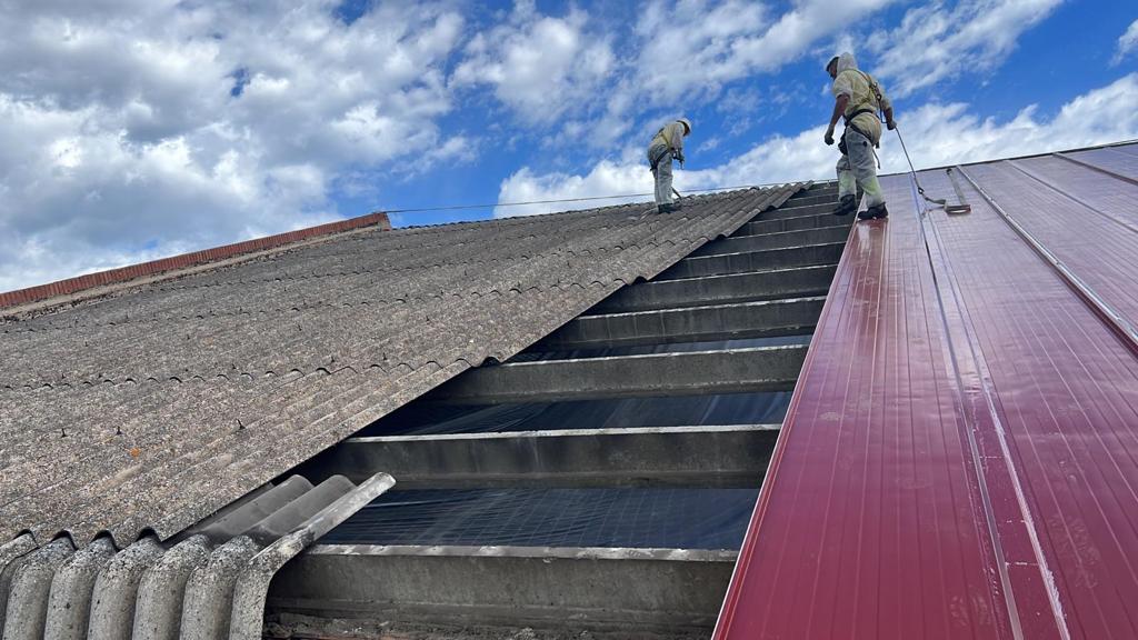 Retirada de cubiertas, retirada y gestión del residuo de fibrocemento.